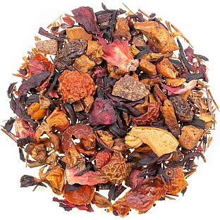 Zutaten: Apfelstücke, Hibiskusblüten, Rooibos, Hagebuttenschalen, Weinbeeren, Zimtrinde(6%), Aroma, Nelken